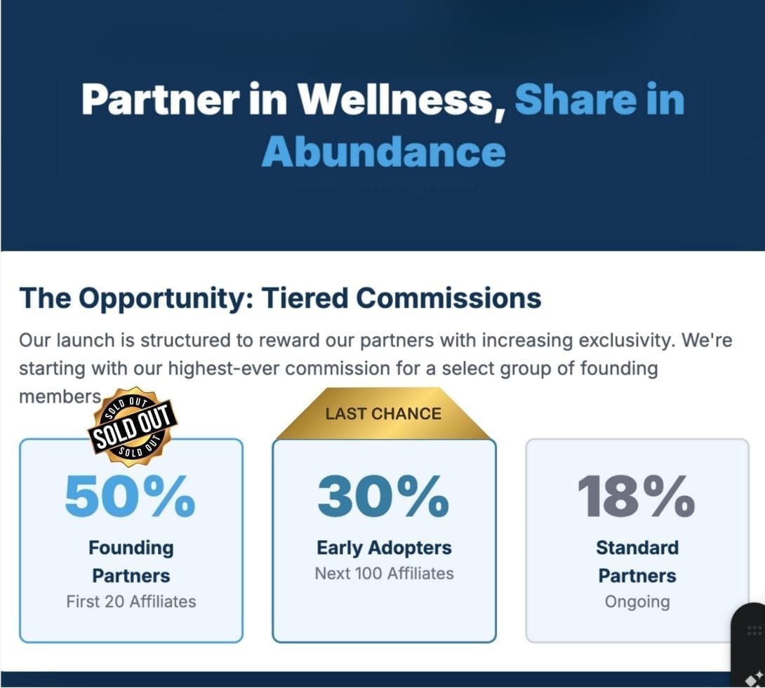 Recurring commissions on every membership you refer: 50% for Founding Partners (first 20 affiliates to join), 30% for Early Adopters (next 100), and 18% for Standard Partners after that.